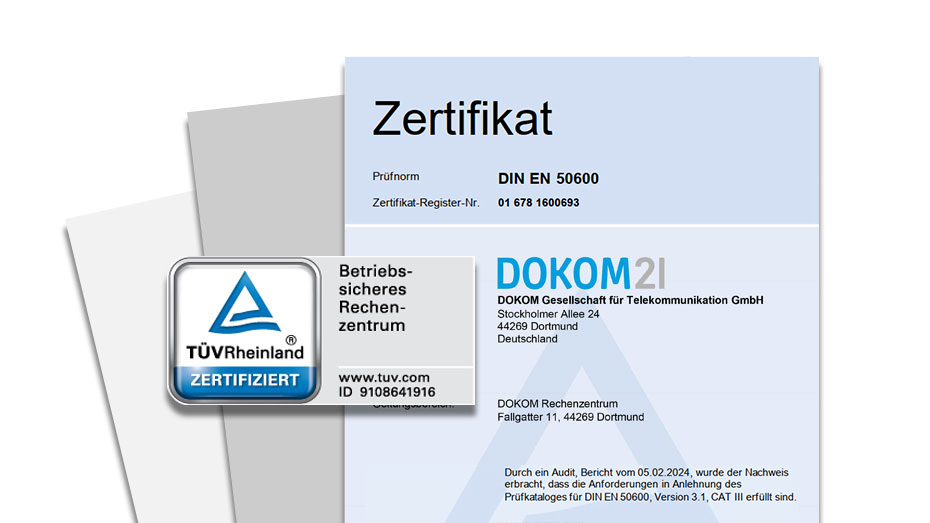 Sobald sich in Ihrem Unternehmen an der Bedrohungslage und Ihrem benötigten Grad an Sicherheit etwas ändert, können wir kurzfristig und schnell reagieren und unsere Lösung problemlos mit geringem Konfigurationsaufwand an Ihren neuen Bedarf anpassen. Melden Sie sich hierzu einfach bei Ihrem persönlichen DOKOM21 Ansprechpartner, der die Anforderungen Ihres Unternehmens genau kennt. Wir bieten Ihnen das DOKOM21 Unified Threat Management vollständig auf Basis der Deutschen Rechtssicherheit an und realisieren diese Lösung komplett durch Hardware eingesetzt in Deutschland, in einem TÜV-zertifizierten DOKOM21 Rechenzentrum oder bei Ihnen vor Ort.