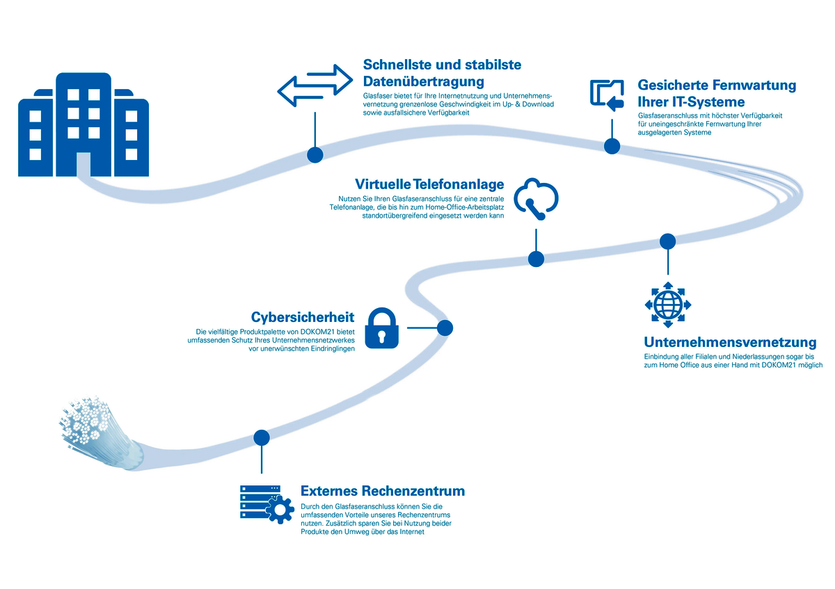Und denken Sie dabei auch an den bestmöglichen Schutz Ihres Unternehmensnetzwerkes und Ihrer Daten. Profitieren Sie hierbei von den professionellen DOKOM21 Sicherheitslösungen: