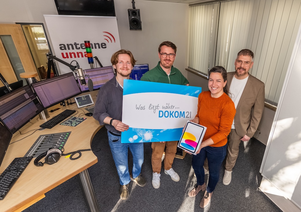 Als Hinrundenpreis erhält er ein iPad inklusive eines zweijährigen Datentarifs. Die Übergabe des Gewinns erfolgte durch Jenny Deppe, Unternehmenskommunikation bei DOKOM21 sowie Deniz Mantke, Account Manager Media bei Antenne Unna.