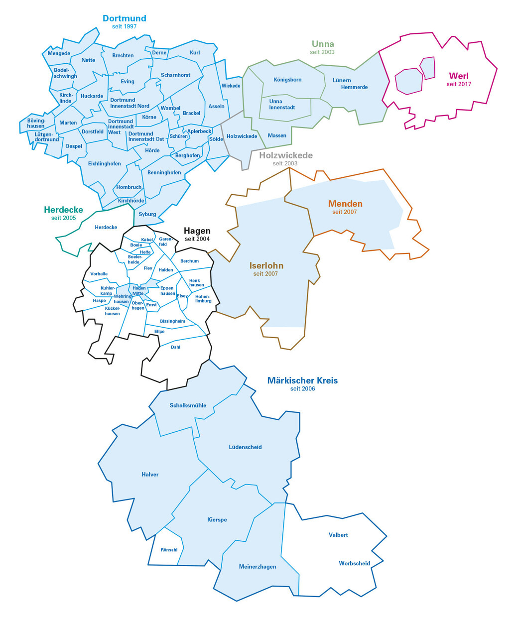 Ein DOKOM21-Anschluss ist in folgenden Städten verfügbar: